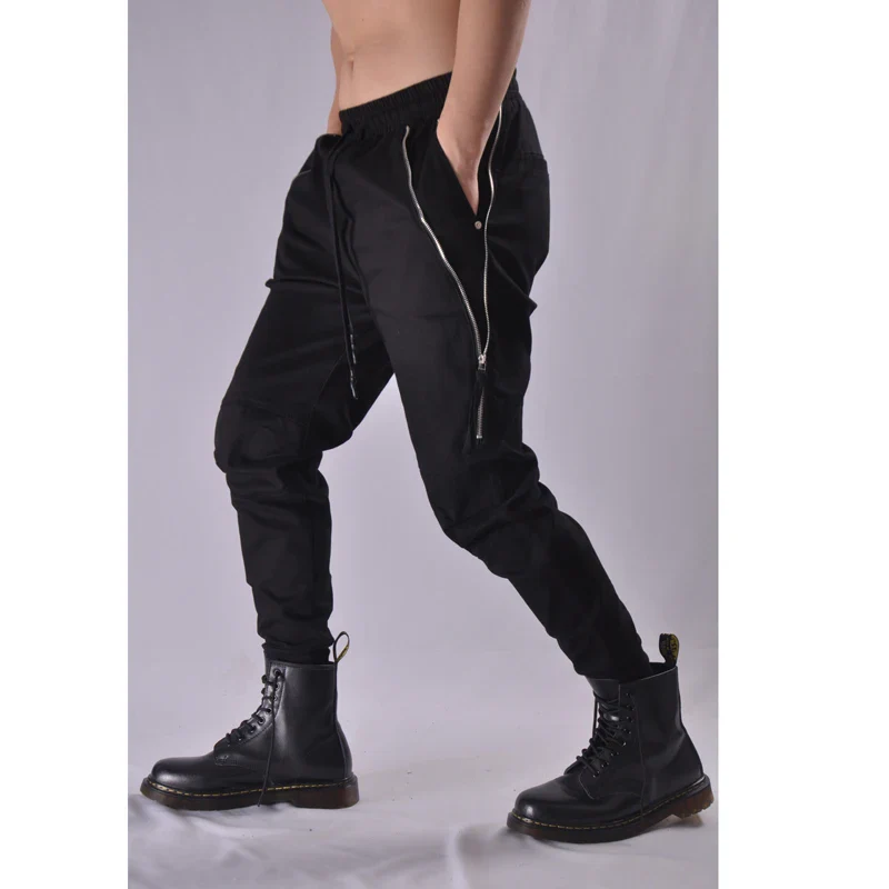 Casual and versatile pants personalized zipper small foot Harlan pants men's slim fitting and legged overalls trend