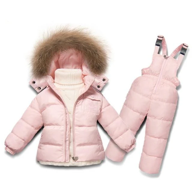 Winter Boys Girls Clothing Set Infant White Duck Down Coat+Overalls 2PC Children Snow Wear Windproof Ski Suit