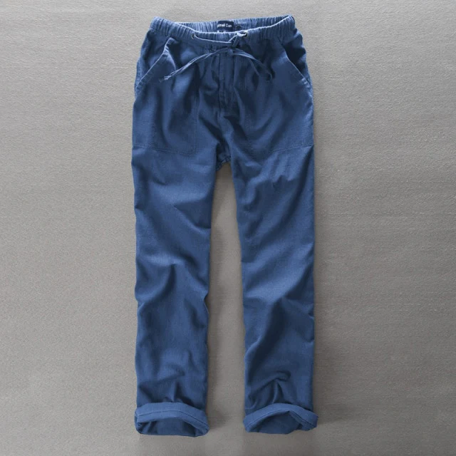 Loose Straight Pants for Men Casual Linen Leisure Beach Style Elastic Waist Trousers Spring Summer New