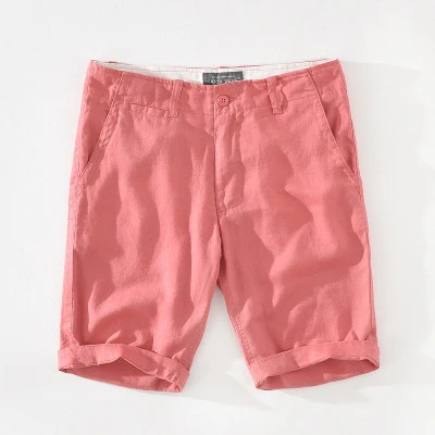 Men Casual Shorts Summer Thin 100%Pure Linen Straight Shorts Solid White Loose Beach Holiday Short Pants