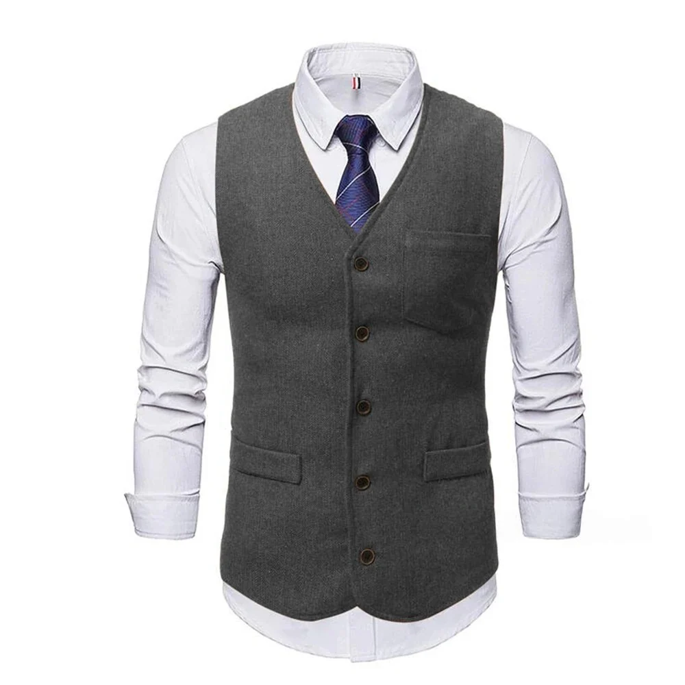 Men's Suit Vest V Neck Wool Business Casual Gentleman Groom Best Man Vests Party Coat Sleeveless Jacket