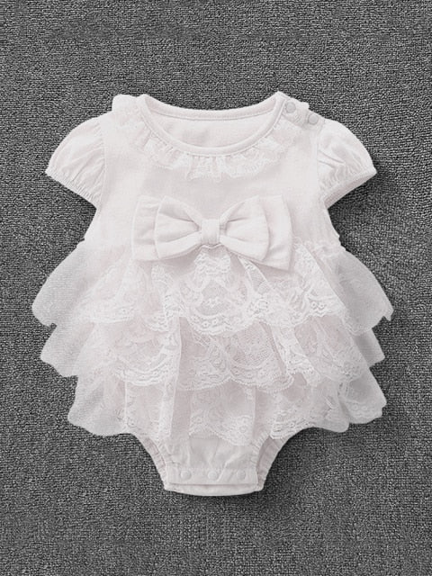 Newborn bodysuit dress for baby girls wedding half birthday bodysuit lace cotton jumpers summer