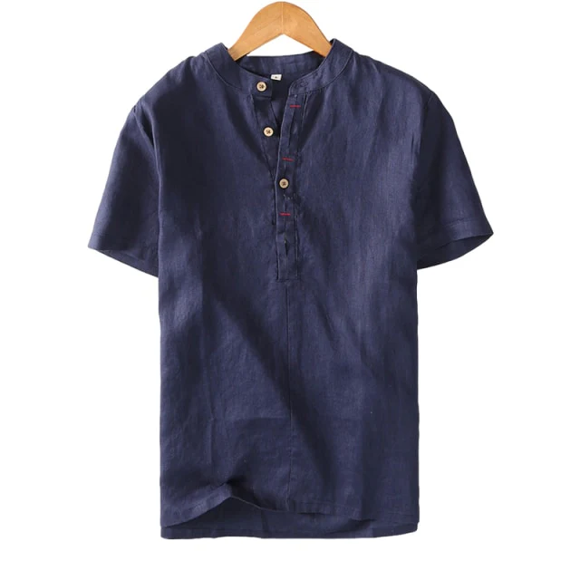 Pullover Shirts for Men Short Sleeve Linen Tops Summer Casual Turn-down Collar Vintage Designer Clothing