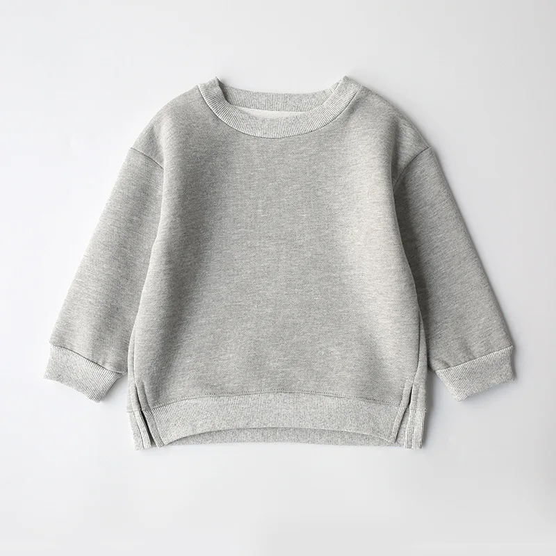 Round Neck Fleece Hoodies Middle Small Children Girl Boy Wear Pullover Solid Autumn Winter Kids Sweater Top