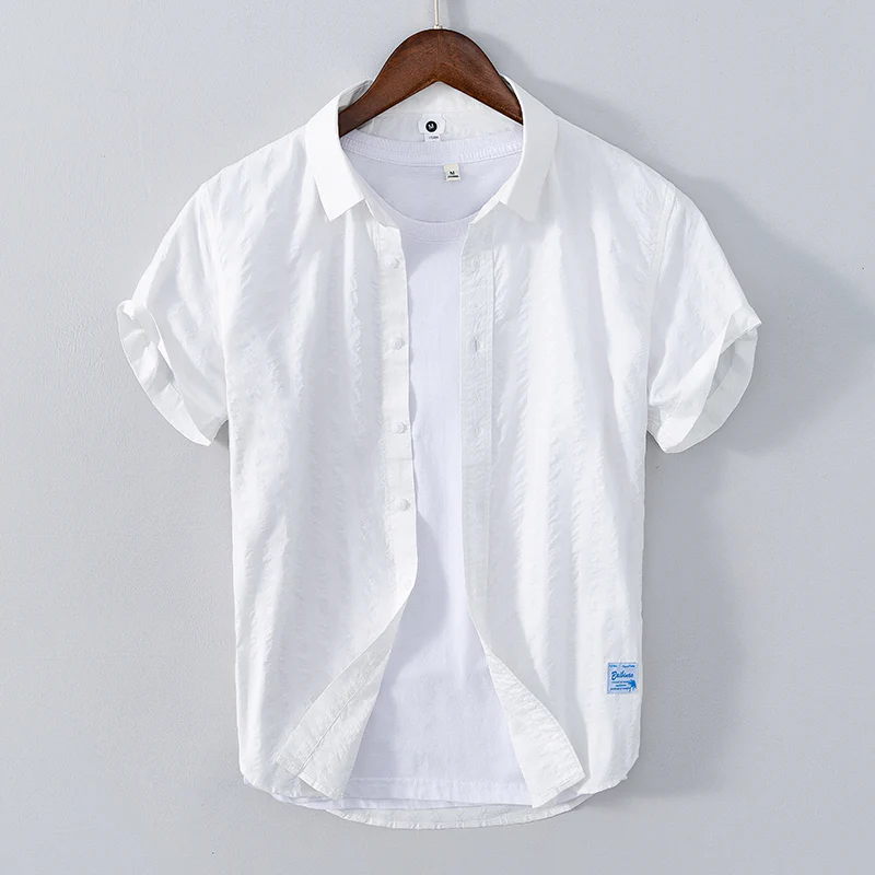 Short Sleeved Striped Shirt for Men Summer 100% Cotton Tops Male White Casual Turn-down Collar Daily Clothing Trends