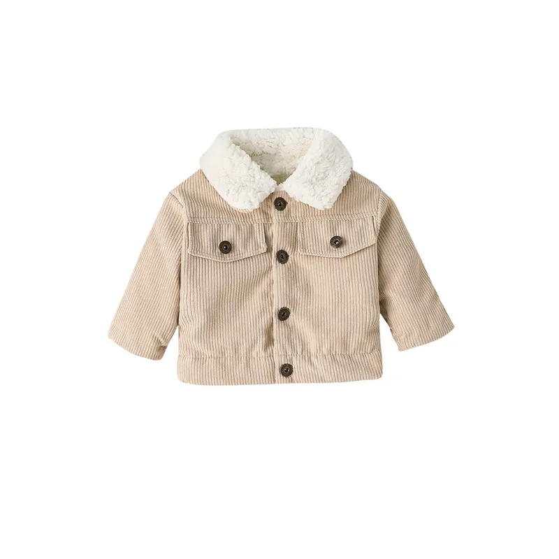 Toddler Boys Girls Autumn Winter Coat Beige Long Sleeve Lapel Button Down Plush Jacket Outerwear Baby Clothes