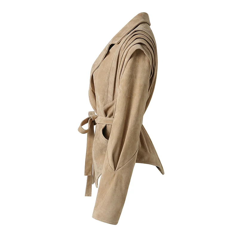 Women's Leather Jacket Short Coat Female Motorcycle Turn Down Collar Lady Streetwear Coat with Belt