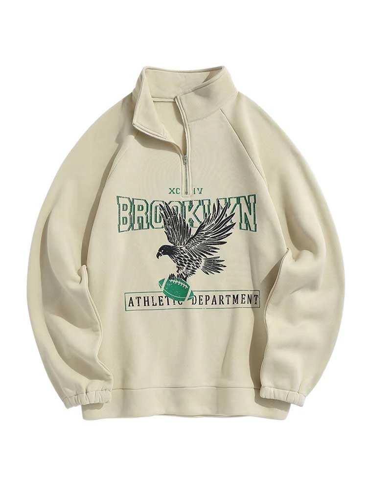 Hoodies for Men Fleece Lining Brooklyn Eagle Graphic Sweatshirt Unisex Turtleneck Hoodie Zipper Streetwear Pullover Sweats