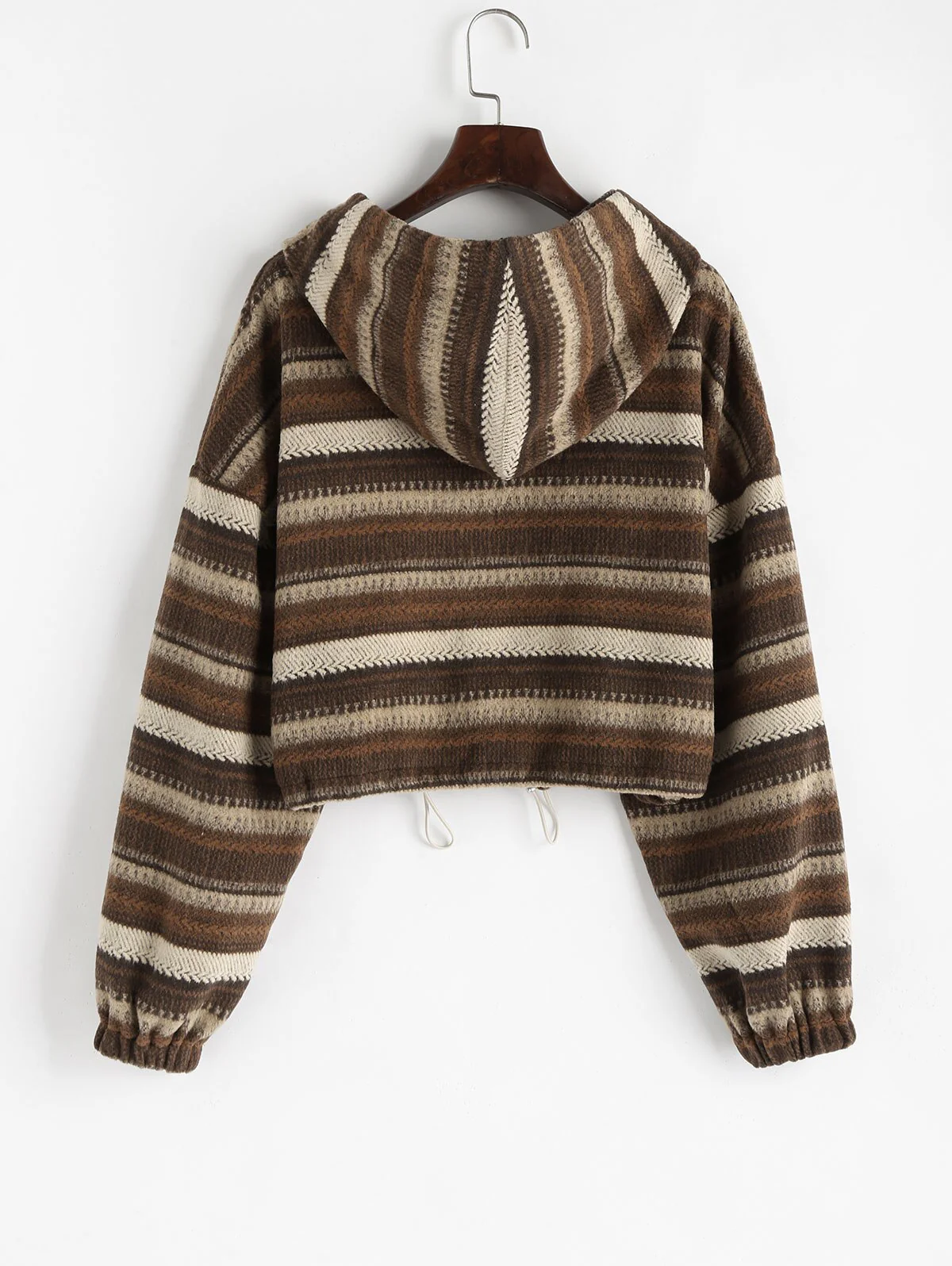 Toggle Drawstring Hem Hooded Crop Jacket Women Zip Up Drop Shoulder Coat Casual Outerwear